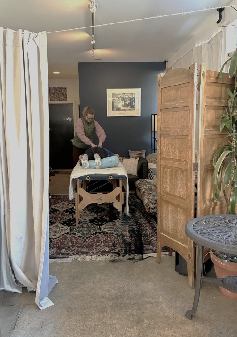 Free parking lot onsite. Sessions are fully clothed and include hands-on healing touch. Walk-ins are welcome as long as space allows.